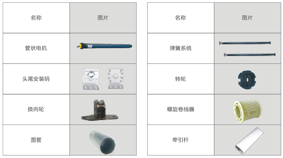 ●每套係統使用一台50係列的管狀電機和一個彈簧係統;