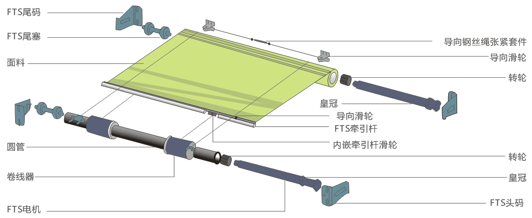 適用於公共場所等大型玻璃窗的遮陽FTS天棚簾