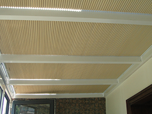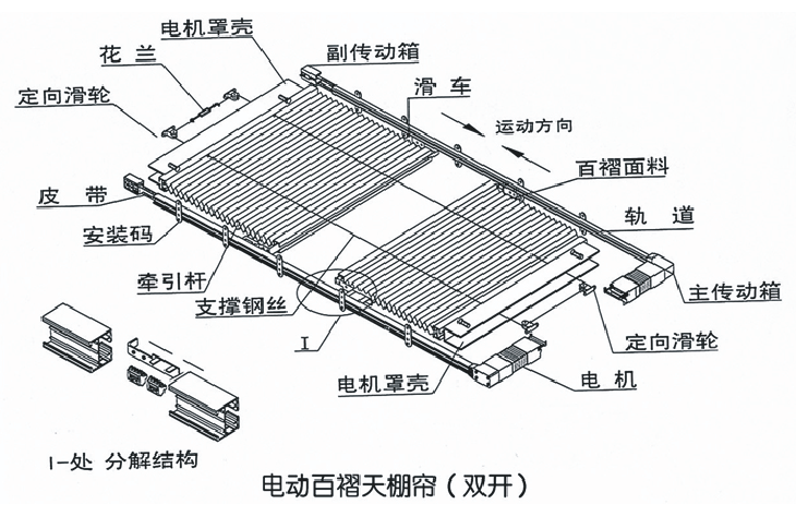 電動百褶天棚簾簾是室內的高檔遮陽裝飾用品,采用直流電機驅動,電機體積小,功率小,安全可靠,通過調速裝置使同軸上的卷繩器產生轉動,拉動卷動繩開合,從而達到簾布的開啟和閉合。其結構獨特的限位裝置使不同規格產品都能準確地進行上下定位,同時在電機處於堵轉狀態時電機供電自動切斷,可使電機不受堵轉損害。