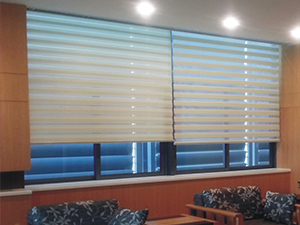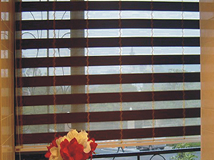 柔紗簾采用的是滌綸纖維麵料,環保無毒無害:它是通過特殊編製法在同一塊的滌綸織維麵料之間加入一層紗百折而成,折成橫條柔簾來調節進光量的大小,為室內提供和諧的采光效果,同時使強烈的太陽光變的柔和、舒服、視線條理化好。